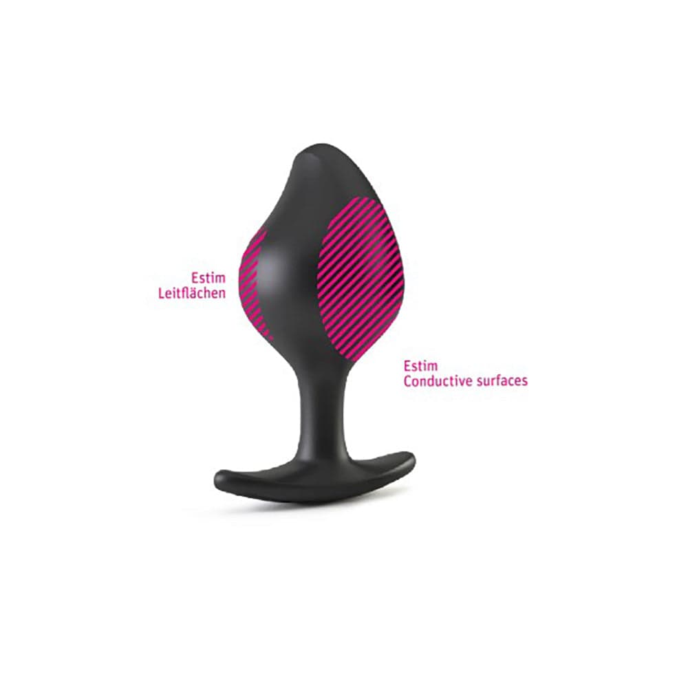 This advanced wellness device integrates two stimulation technologies in one unit. The vibration function includes multiple selectable intensity levels controlled by a remote, while the electro-stimulation capability connects seamlessly with Mystim power units for deeper sensory customization.