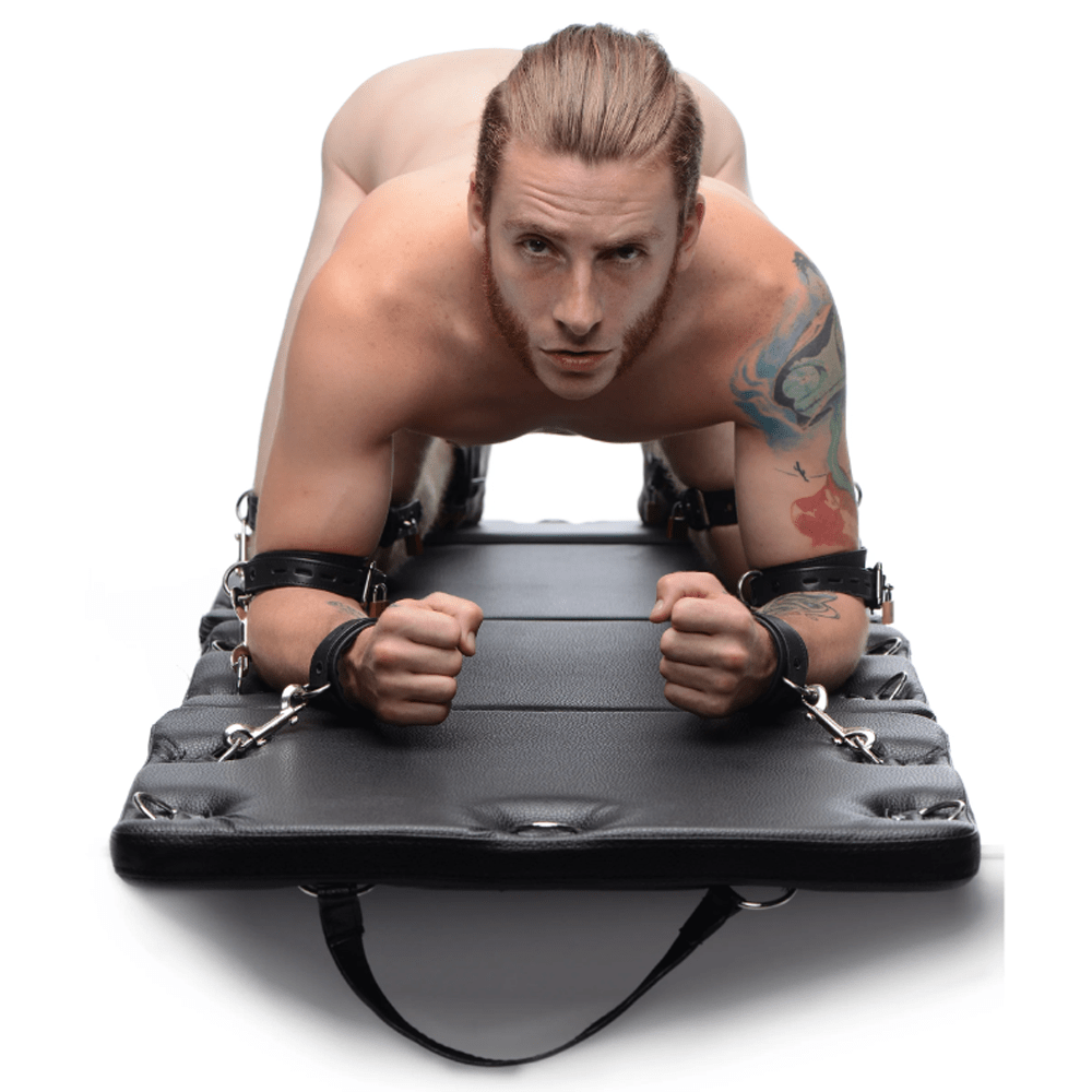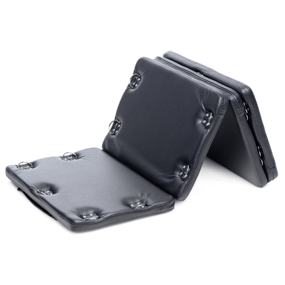 Bigger and better than before, the XL Bondage Board presents you with 21 extra inches and 18 D-ring attachment points to pair with your favorite restraints and turn your fantasy into reality! Turn any room into a dungeon with a unique piece of BDSM furniture that discreetly folds up and tucks away when not in use. The easy-carry handles make it convenient to take over to your partners house or on a kinky vacation. A total of 4 folding sections create greater versatility of positions, allowing you to put your plaything in doggy-style or keep their front helplessly exposed. The XL Bondage Board is comfortably cushioned for hours of pleasure play.