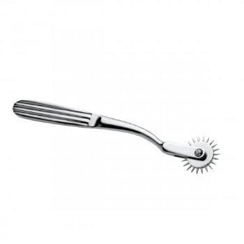 Test the limits of sensitivity play with this classic Wartenburg wheel. Run this premium spiked wheel across the skin and other highly treasured areas for an exciting prickle of pleasure. Made of nickel-free stainless steel and deviously designed with a row of evenly spaced sharp pins that turn smoothly as it rolls across the flesh, it is ideally designed for intense, exquisite pleasure. Take it to the next level with a little temperature play... the slick material can be warmed or cooled for an extra spike of sensation.