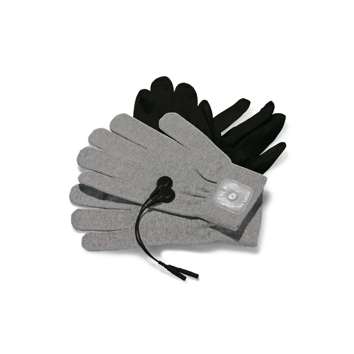 To transfer the stimulation to the touched skin areas, first isolate your hands from the impulses. Please use a pair of the five vinyl gloves already included in the delivery. Strip the Magic Gloves on top and make sure that they do not overlap the vinyl gloves on the arm. Touch the region you want to stimulate and only switch on the stimulation current when you can judge the intensity. Take care that your hands do not touch each other, otherwise the stimulation will not be transferred to the skin. The stimulation with the Magic Gloves is very gentle, because the percentage of conductive material is much lower than for example with a Toy made of aluminium. You can clean the Magic Gloves with a mild detergent in your hand wash. You should also use a hygiene rinse at regular intervals. Please do not put the gloves in the washing machine or tumble dryer. After all, you want to enjoy gentle massaging with that certain extra kick for a long time.