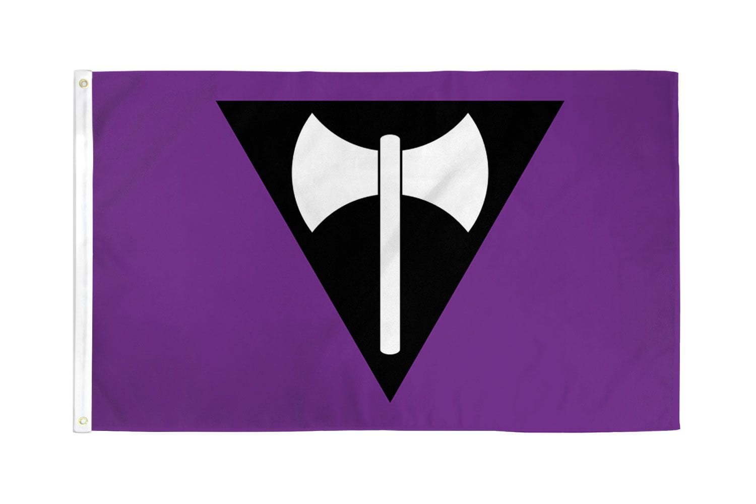 Our 3 X 5 ft Polyester Lesbian (Labrys) Flag has header tape and 2 metal grommets
