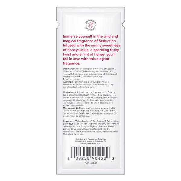 Fall in love with the intoxicating scent of Seduction, a magical blend of sunny honeysuckle, sparkling fruity notes, and a subtle touch of honey. Our Coochy Shave Cream is specially formulated to prevent red bumps and irritation, leaving your bikini area, underarms, legs, and more silky smooth and touchably soft.