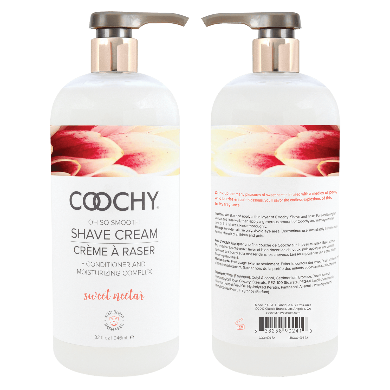 Indulge in the vibrant, fruity scent of Sweet Nectar, a luscious blend of pear, wild berries, and apple blossoms. Our Coochy Shave Cream is designed to prevent red bumps and irritation, leaving your bikini area, underarms, legs, and any shaved area silky smooth, soft, and delicately fragranced.